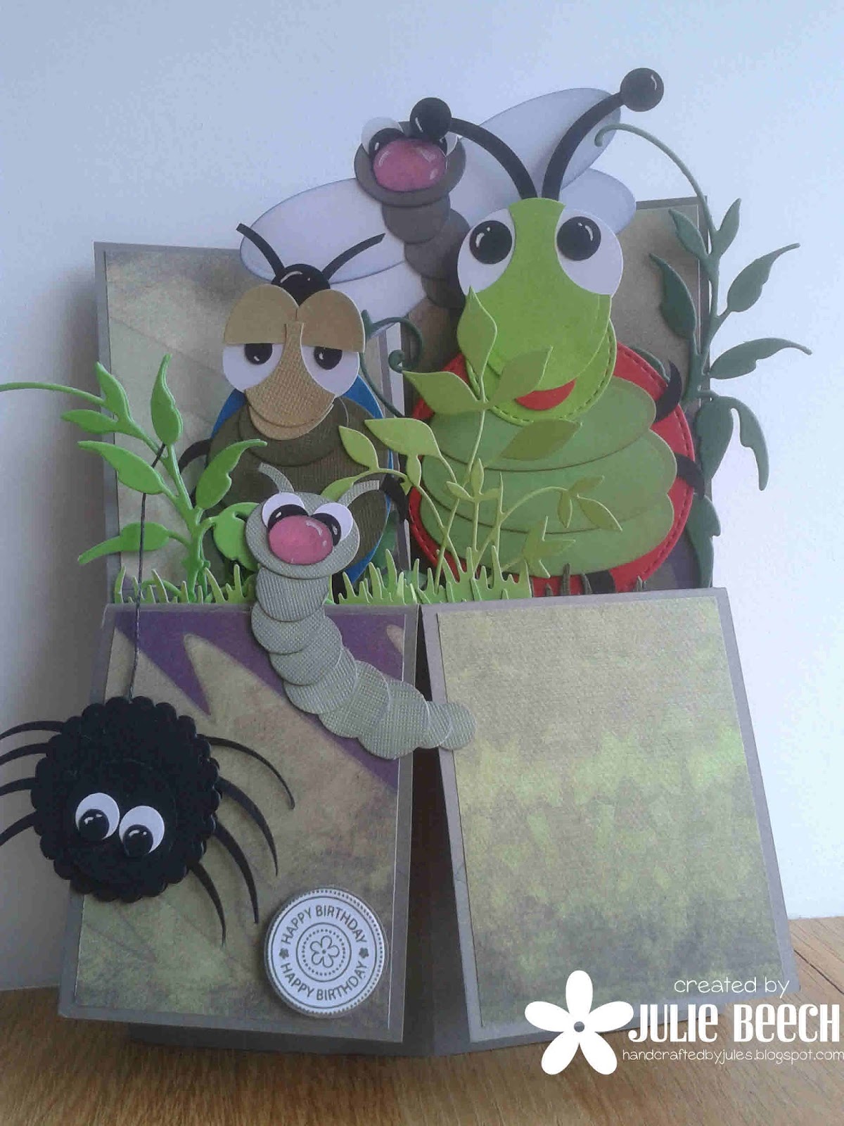 The box card format suited the punch art creatures and I was told that it was still displayed on Ben's friend's shelf long after his birthday.