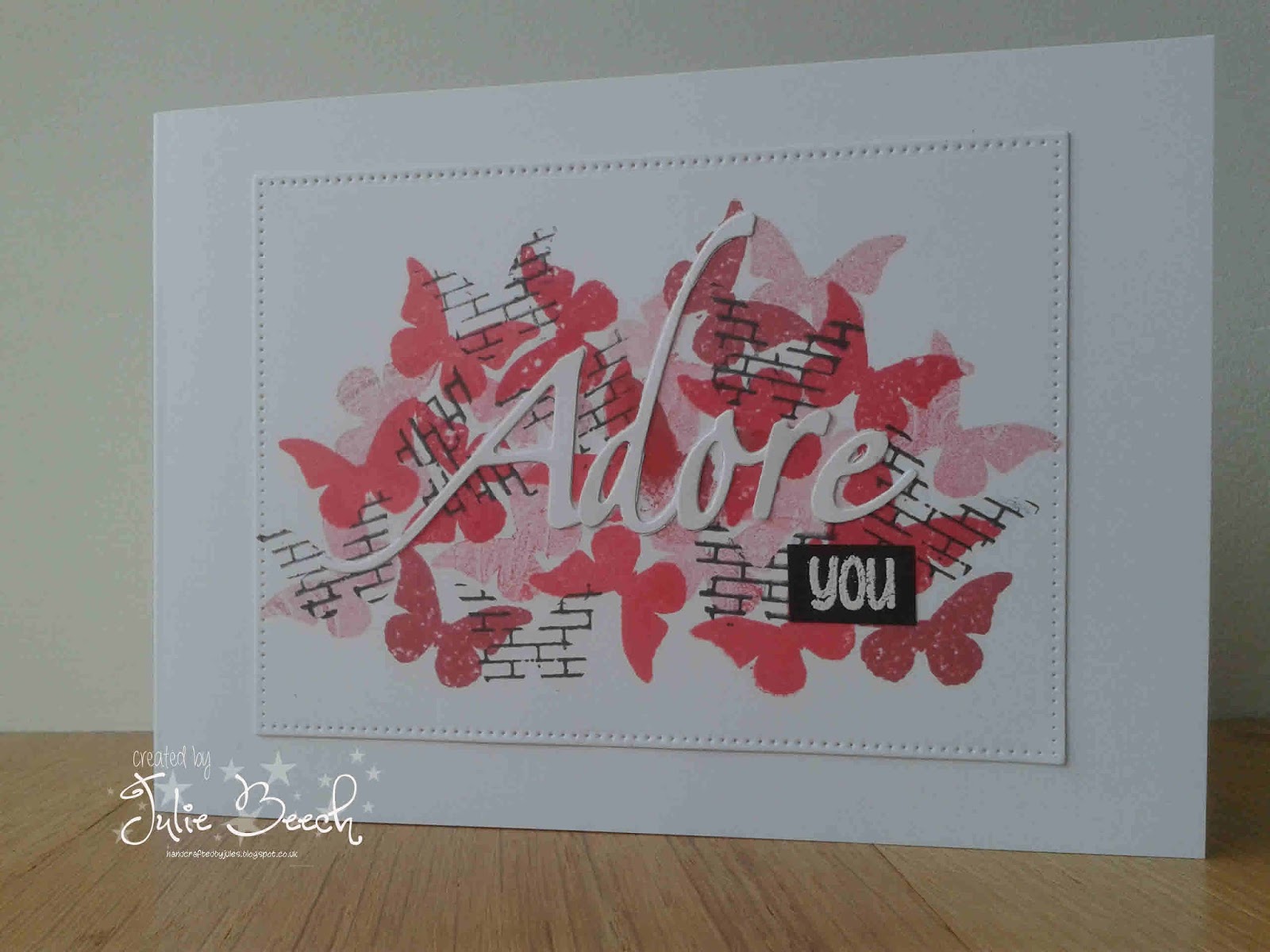This is cleverly done, Julie, and that 'Adore' die-cut looks magical against that montage of butterflies and texture! thanks so much for joining us at CASology this week!