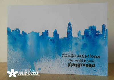 I'd seen a painting of a city skyline using a loose water colour technique. When I saw Cornelia's card, it reminded me of it and then with Loll's it firmed up my idea.