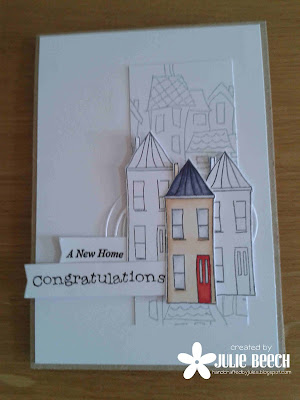 Anyway, Tom and BeckyJo have finally decided to fly the nest and set up on their own and here is the card I made to celebrate and welcome them to their new home together.