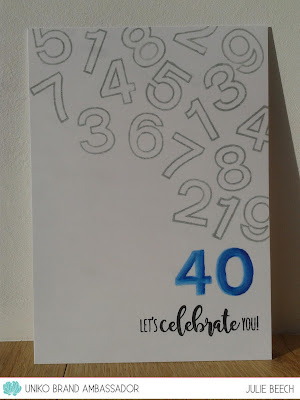 The outlined numerals were stamped in grey on a white base card before the 40 was coloured with Copics and the sentiment from Wonderful Day stamped in black.